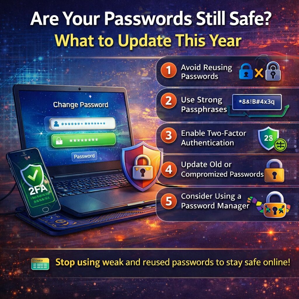 Taking time to update your passwords now can prevent serious problems later. In today’s digital world, strong password habits are one of the easiest—and most effective—ways to protect yourself.